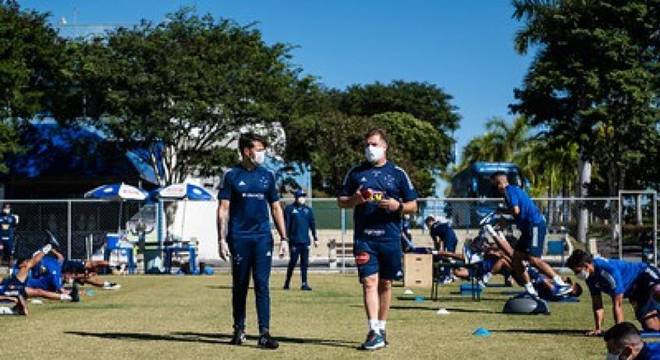 atividades com os os atletas em cinco pequenos grupos, com eles chegando ao CT
